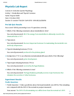 | Read Physio Ex Exercise 4 Activity 1 Physioex Lab Report Exercise Endocrine System Physiology Activity Metabolism And Thyroid Hormone Name Maycee Smith Date October Studocu |